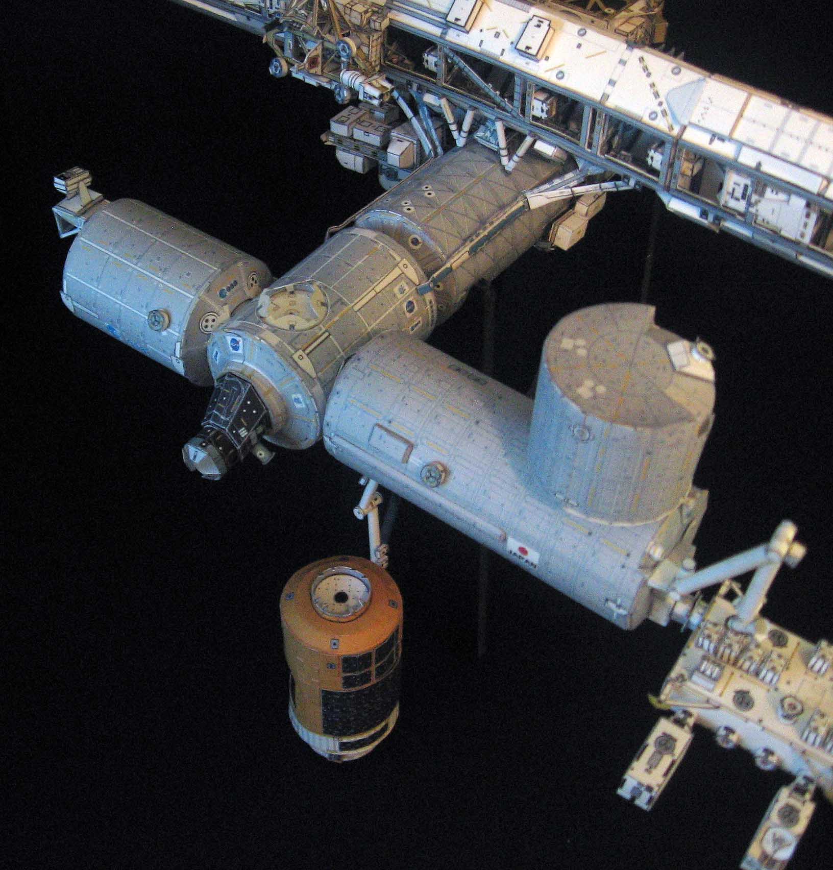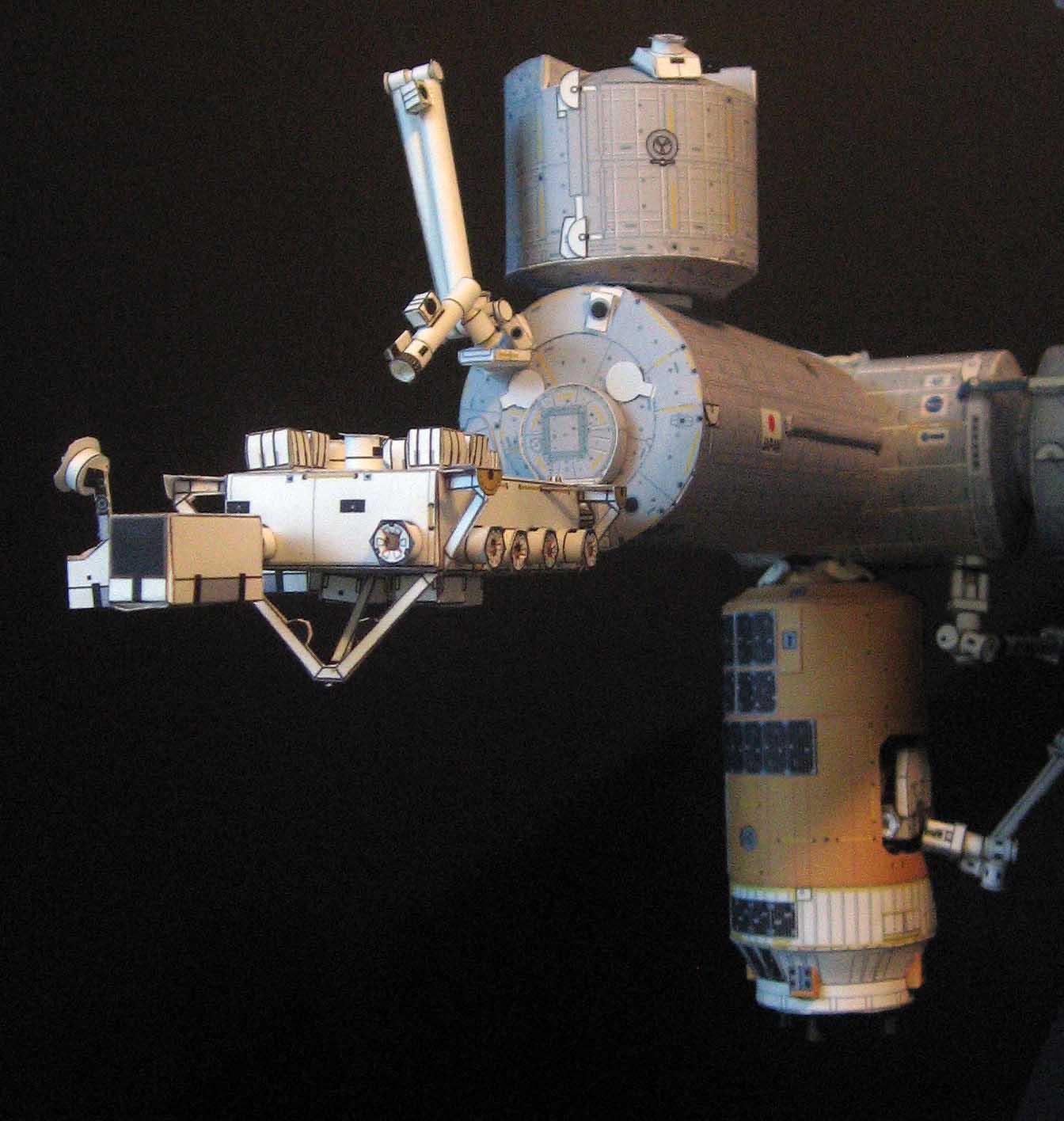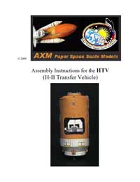 The HTV-1 was launched aboard the H-llB rocket on September 10, 2009 on its Maiden Flight from the Yoshinobu Launch Complex in Tanegashima, Japan. It was successfully captured and berthed to the ISS by the Canada Arm 2 on September 17, 2009. It is JAXA's (Japan Aerospace Exploration Agency) first unmanned space vehicle for International Space Station (ISS) re-supply and waste cargo disposal. Once the Space Shuttle is retired in 2010, the HTV will be the main system to carry external payloads to the ISS. HTV is a new system from JAXA. It is a first of its kind because it has the capability to carry the pressurized and unpressurized cargos, and the Exposed Pallet as a part of HTV system has an important role to carry the external cargos into ISS. It can carry payloads including clothing, food, and other supplies needed for the ISS inside of its pressurized module. It can also carry payloads for the JEM-EF inside of its unpressurized cargo module. HTV-1 is carrying two experiments for the JEM-EF. The experiments include SMILES (Superconducting Submillimetre-Wave Limb Emission Sounder) and HREP (HICO-RAIDS Experiment Payload). The HTV papermodel was made possible from sources obtained from JAXA website and NASA's Gallery page. Enjoy the photos and the model!