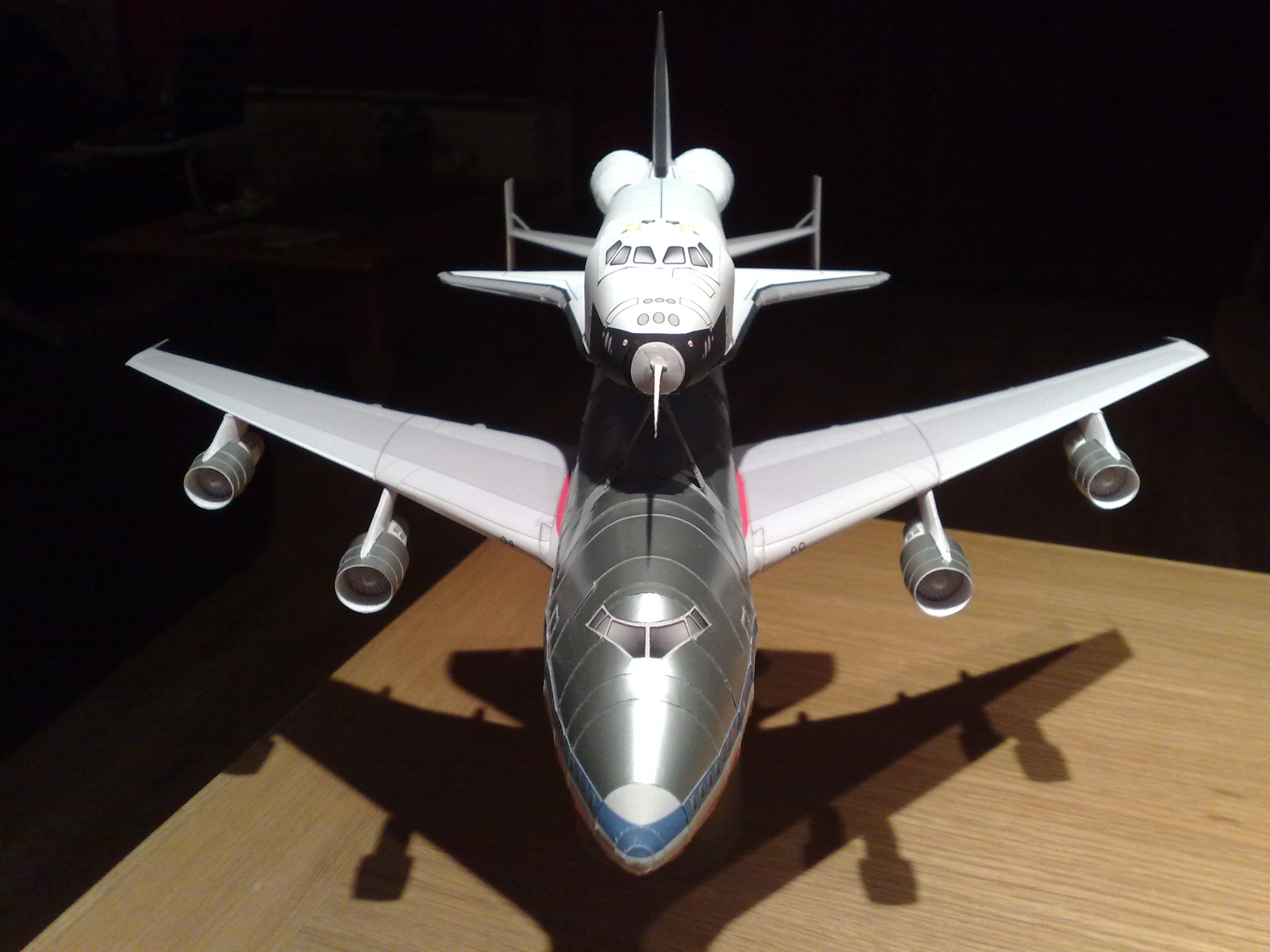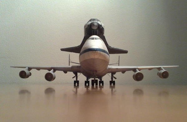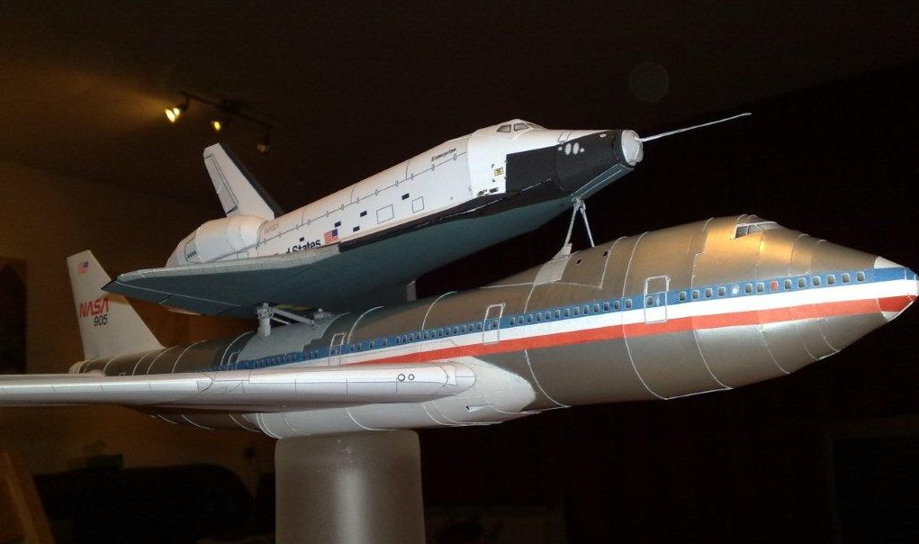 SCA Papermodel (1:144 scale) The SCA B747-100 papermodel was made by Richard De Vries from Amsterdam, who kindly modified it specially to match the AXM Space Shuttle in 1:144 scale from this site. Richard is very well known and was the designer of the Wing Supports for my AXM Orbiter as well. This airplane model is based from the original British Airways Jumbo B747-400 version made by K. Kiyonaga from P.Models for the Canon Creativepark website. The modifications to convert it to a B747-100 version included the size of the wings, the turbo engines, the Orbiter support struts and tail stabilizers. All copyright and credits belong to both designers De Vries and Kiyonaga. This papemodel cannot be commercialized, therefore is a FREE model. The designer Richard De Vries allowed this site to make the SCA page and to host the SCA files as well.