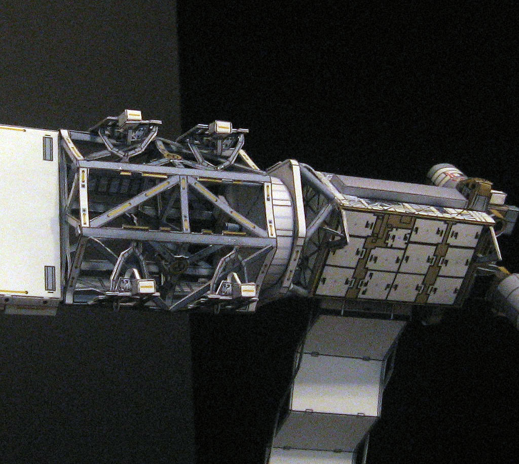 STS-117 Payload / 13A Space Shuttle Atlantis was launched on June 8, 2007 on an assembly mission to the International Space Station carrying the S3-S4 Truss segment. Atlantis was the same orbiter that carried the P3-P4 truss a year earlier under the same payload bay configuration. This truss is similar to P3-P4 with the difference that carries 4 UCCAS and has no thermal blanket. The S3-S4 truss was installed on the Starboard side of the integrated truss system and attached to the S1 truss. The crew of Atlantis added a new member, Clay Anderson who originally was assigned to STS-118. But due to the hailstorn that damaged the External tank of STS-117, the 118 mission was further delayed, so Anderson was moved out to join the crew of STS-117 in order to replace Sunita Williams who needed a ride home. With the addition of the S3-S4, the ISS had a new configuration, making her more symmetrical. For this model, the payload detail was made possible thanks to NASA's photo Gallery. Technical data obtained from Robotics documentation from NASA website. Enjoy the photos and the model!