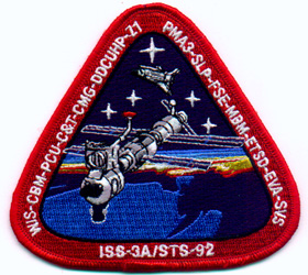 Space Shuttle Discovery was launched on Oct 11, 2000 on a mission to the ISS carrying the Z1 Truss and PMA-3. On this mission, Discovery docked to the ISS via PMA2 on "Unity". The Z1 Truss was placed on the zenith (top) port of Unity and the PMA3 on the nadir (bottom) port. The Z1 Truss carried the first SASA antenna which was relocated on Z1 from its launch configuration to a temporarily position. This antenna will be relocated on the next mission to the top of the P6 Truss. This is the only time on which the Orbiter Docking System was covered with a thermal blanket.