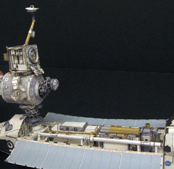 STS-97 Payload ( P6 Truss / Assembly Stage 4A ) Space Shuttle Endeavour was launched on Nov 30, 2000 on a mission to the International Space Station to start the new assembly stage 4A carrying the P6 Integrated Truss Segment with its "wings"-giant solar arrays. The entire 17 ton package became the heaviest and largest element delivered to the Space Station by a Shuttle. The P6 consisted on 3 parts: the Photovoltaic array assembly (solar arrays), the IEA (integrated equipment assembly) and the Long Spacer. Endeavour docked to the ISS through PMA-3 on the nadir port of Unity (bottom port). Astronauts Tanner and Noriega attached the P6 Truss element to the Z1 Truss already on top of Unity and prepared the solar arrays and radiators for deployment. On a second EVA, cables were set up to connect the P6 with Z1. The SASA antenna on the Z1 truss was relocated to the top of the P6 truss. Then the PMA-2 was prepared for the arrival of the Destiny Lab module. Photos below show the assembly steps for this mission. Information from different sources were available to make this model as accurate as possible considering the scale. Robotics and EVA information from NASA website was obtained. This module is available via Paypal in both scales. Enjoy!!
