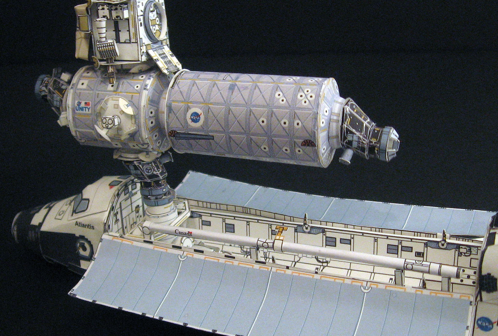 From left to right at the bottom of this page: Docking through PMA-3. Notice the relocation of PMA-2 which was moved from the front port of Unity to the berthing port of Z1 truss. Later, Destiny was connected to Unity and finally the relocation of PMA-2 to the front port of Destiny. A separate EVA took place to put a second SASA antenna as a spare part in the Z1 truss but this time facing up to give space for the future "Quest" airlock module.