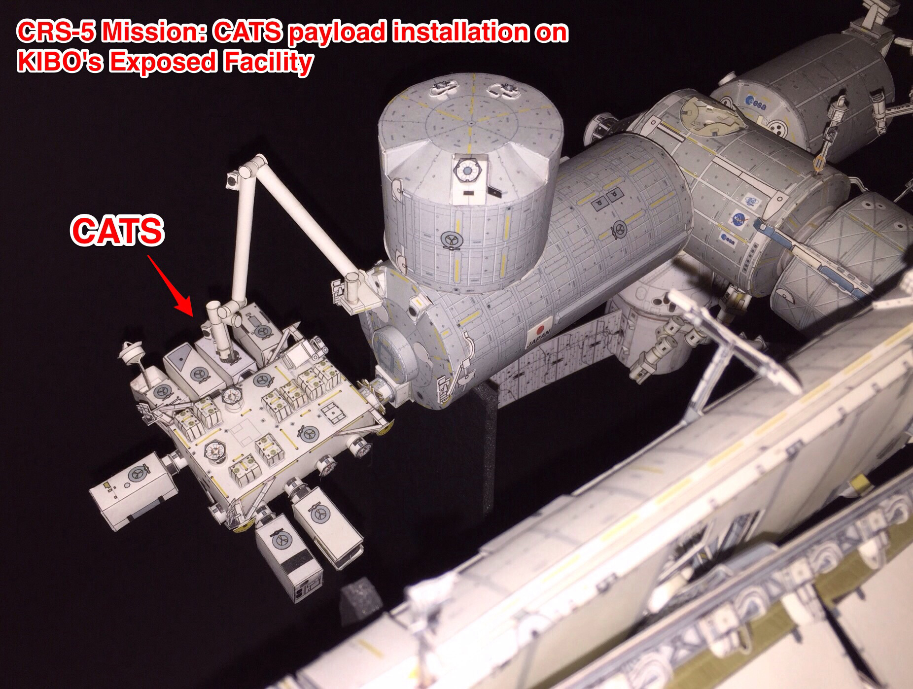 SpaceX launched the Falcon 9 v1.1 CRS-5 on Jan 10, 2015 from Space Launch Complex 40 (SCL-40) of the Cape Canaveral Air Force Station becoming the Fifth Cargo Resupply Services Mission. Dragon SpX-5 carries an external payload inside Dragon's Trunk to the Space Station, the -ISS-CATS (Cloud Aerosol Transport System). This payload will be placed on KIBO's Exposed Facility. For this mission, SpaceX has installed Grid Fins and landing legs on the Falcon rocket. It will attempt to land on a barge called the Autonomous Spaceport Droid Ship. The AXM version for the Falcon-9 v1.1 / Dragon papermodel and the ISS-CATS payload was made possible from NASA's photo gallery website. Enjoy the photos and the model!